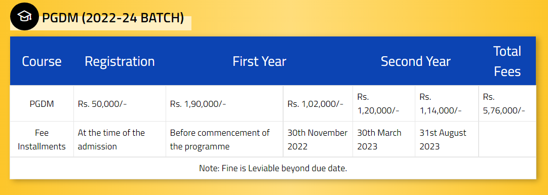 | PGDM | 2 years | Rs. 3,20,000 (First Year) |