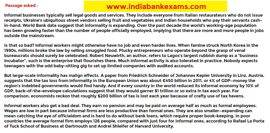 Passage asked in IBPS PO Mains Exam 2016