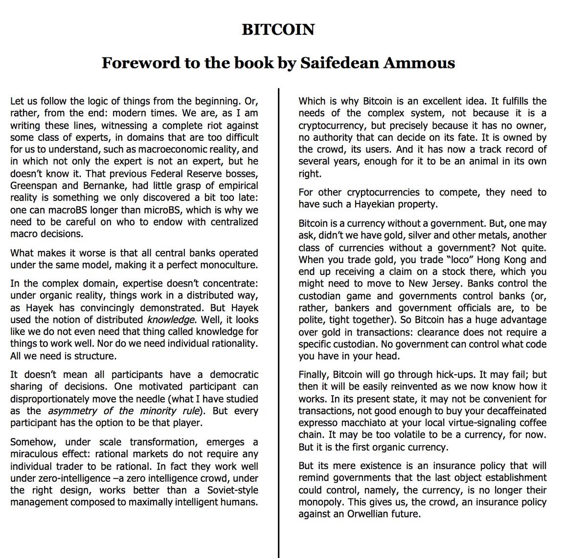 "...The mere existence of Cryptocurrencies is an insurance policy that will remind governments that the last object establishment could control, namely, the currency, is no longer their monopoly."