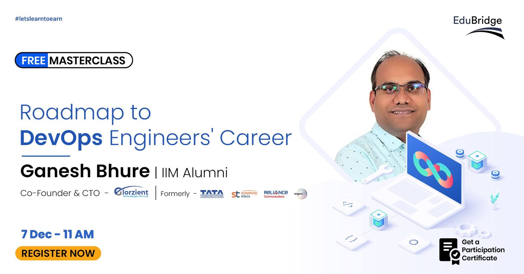 Join us on 7 Dec @11 am and listen to Ganesh Bhure, DevOps Expert, on step by step guide to becoming a DevOps Engineer.