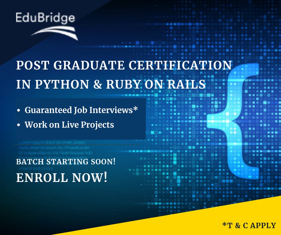 Join Post-Graduate Certification in Python and Ruby on Rails @ Python Full Certification Online Training Course (2023) | EduBridge India Now